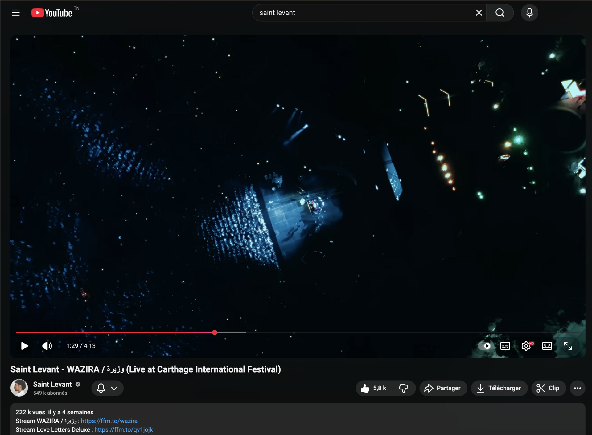 Captation et production du concert de Saint Levant en Tunisie. Une couverture multi-caméra professionnelle pour l'un des artistes les plus en vue de la scène musicale arabe internationale.